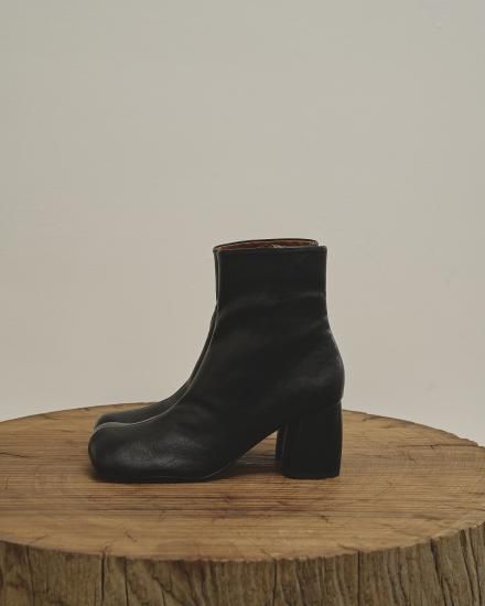 ぽってりとしたスクエアトゥが魅力のショートブーツ。無駄のないミニマルなデザインで、幅広いスタイリングに馴染みます。ほどよいボリュームと安定感のあるヒールは、歩きやすさとスタイルアップを実現。足首をすっきりと見せるタイトなシルエットで、ワイドパンツからワンピースまでバランス良く合わせらる一足。新色のダークブラウンを加えた3色展開です。