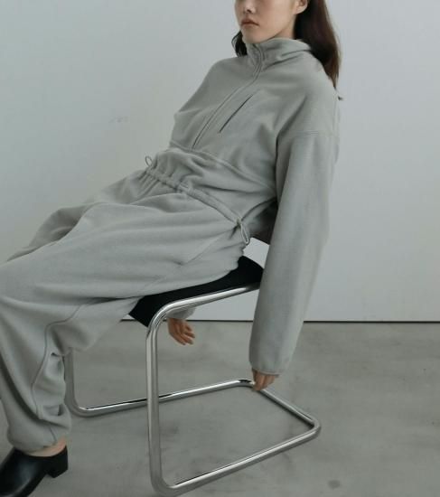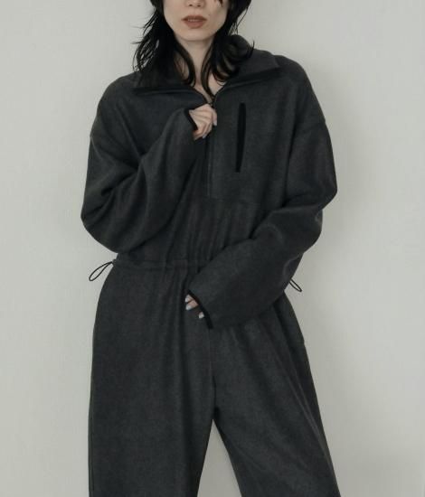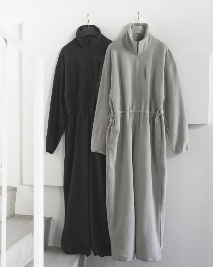柔らかなフリース生地を使用したコンビネゾン。スタンドカラーのハーフZIPデザインで、アクティブな印象に仕上げました。ウエストと裾はドロスト仕様でお好みのシルエットに調節可能です。綺麗目のジャケットを羽織ったり、中にタートルや長袖Tシャツなどを合わせた、レイヤードスタイルで寒い時期も暖かく過ごしていただけます。普段着使いはもちろん、キャンプなどのアウトドアシーンにもおすすめです