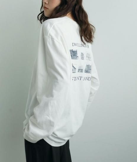 メンズライクなオーバーサイズで仕上げたプリントロングTシャツ。イラストをプリントしたバックスタイルが目を惹く一枚。胸元にもさりげなくロゴプリントを入れています。一枚ではもちろん、ジャケットのインナーとしてや、ニットの中にレイヤードするのにもおすすめ。抜け感あるサイジングで、ラフに着ていただけます。
