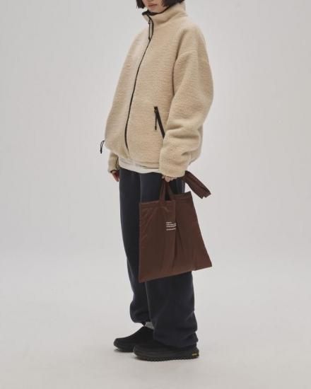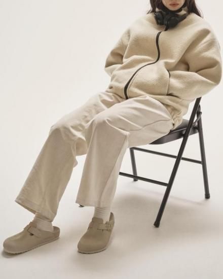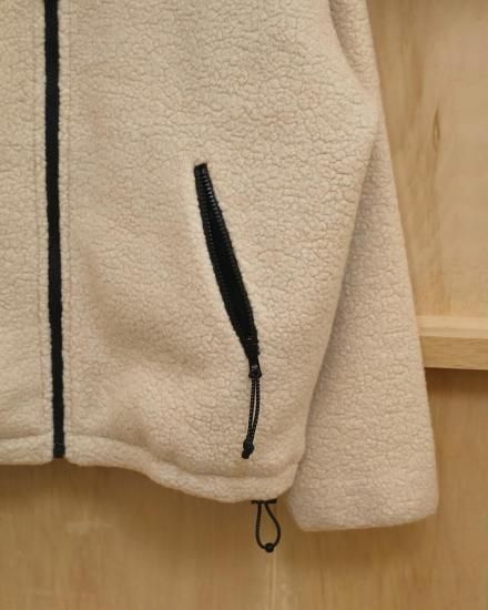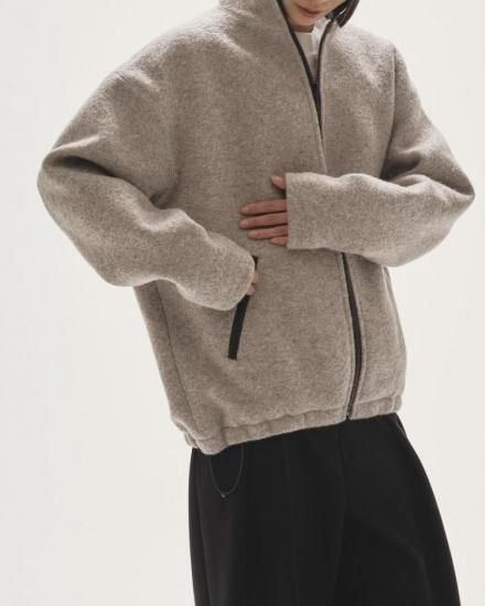 ゆったりとしたメンズライクなボアジャケット。配色のファスナーや引き手が目をひく一着。ウール混のオリジナルボア生地を使用。襟裏やポケットの内側にはフリース素材をあしらい、着心地のよさも抜群。さりげないステッチワークがディテールを引き立て、シンプルながらも存在感のあるジャケットです。