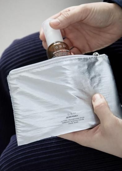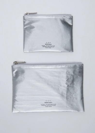 シルバーカラーのコーティング生地とGBHロゴジッパーを使用し、生活防水機能を備えたSILVER POUCHです。