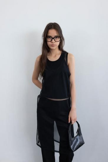 Studio Doe - Sleeveless Side Slit Sheer Top/OVT44