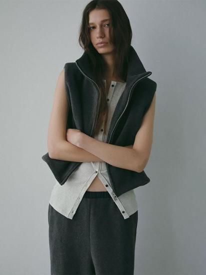 軽やかな印象のコンパクトシルエットのフリースベスト。