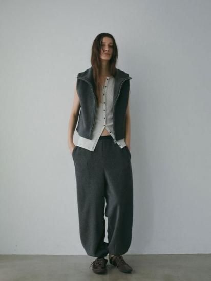 ワントーンで仕上げた同素材のパンツとセットアップで着こなせば、抜け感のある大人のリラックススタイルが完成します。
