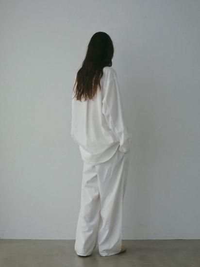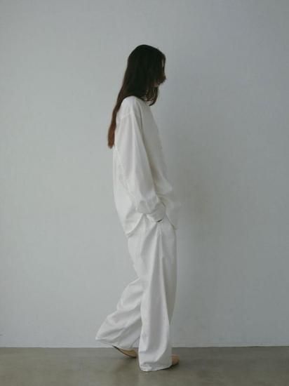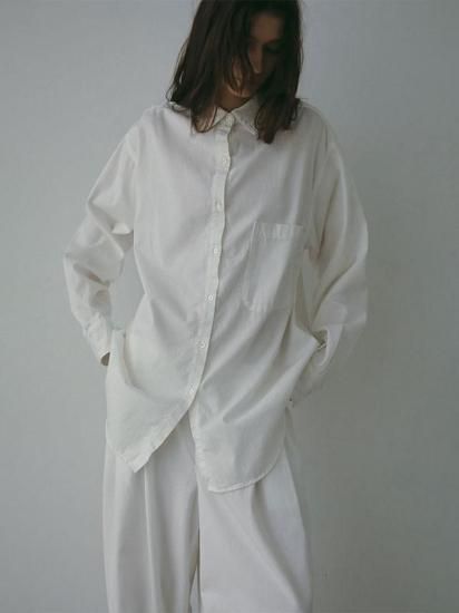 長めの着丈とゆったりとした袖が、動きのあるシルエットを生み出しスタイリングに自然な奥行きをプラスしてくれます。