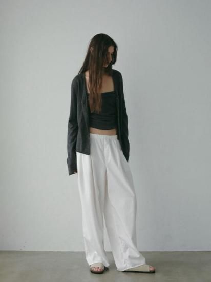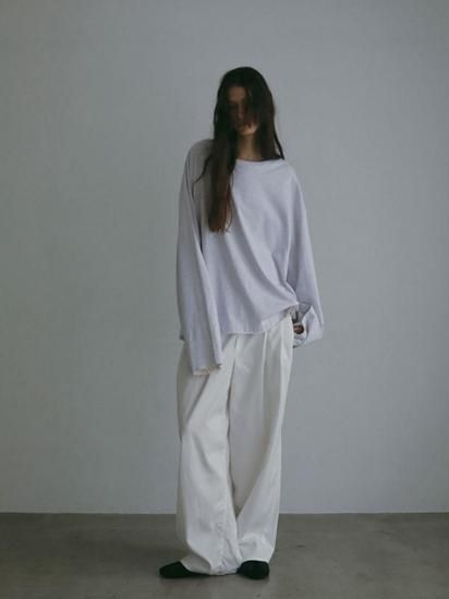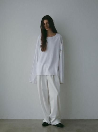 たっぷりとしたワイドシルエットが動くたびに柔らかく揺れ、抜け感のある着こなしに仕上がります。
